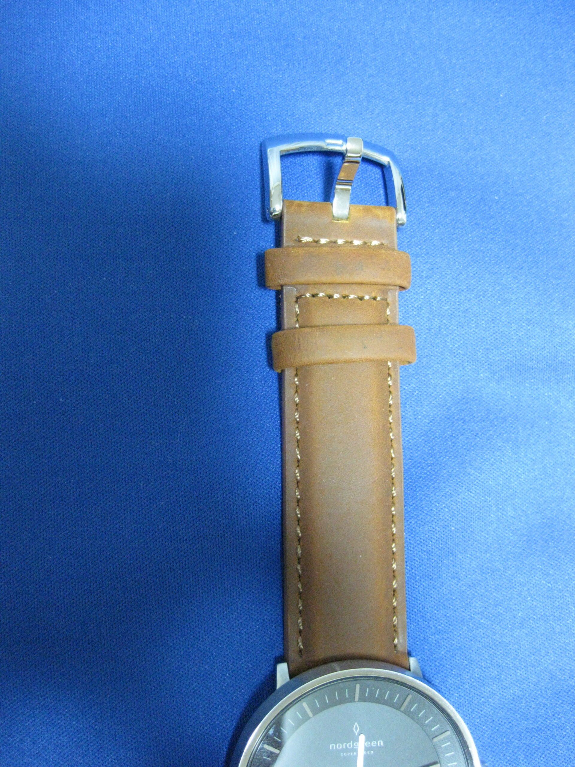 本革性ですから、腕になじむまでちょっとかかりますが、いい感じで腕にフィットしています。